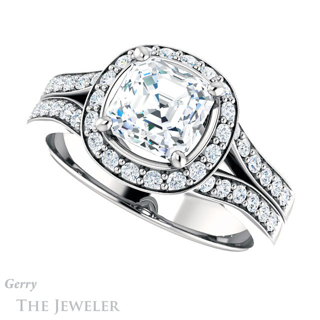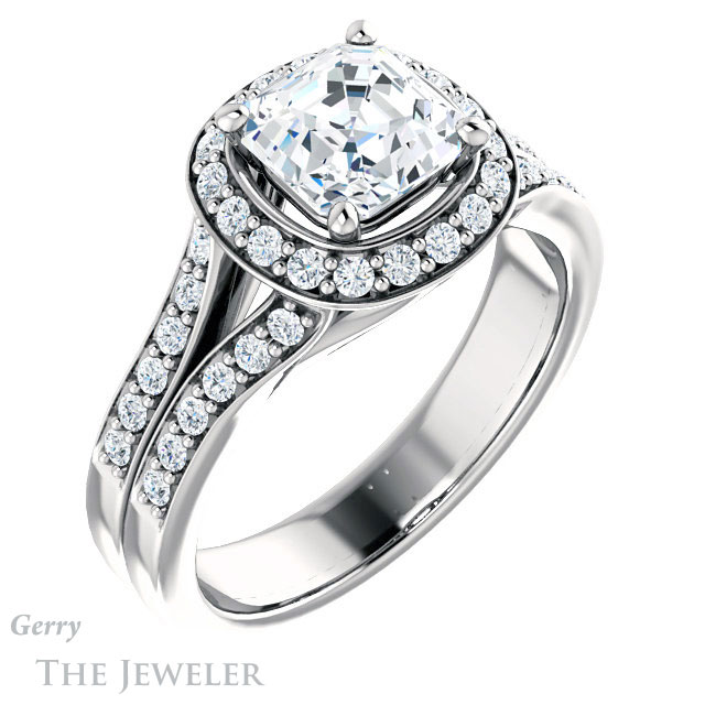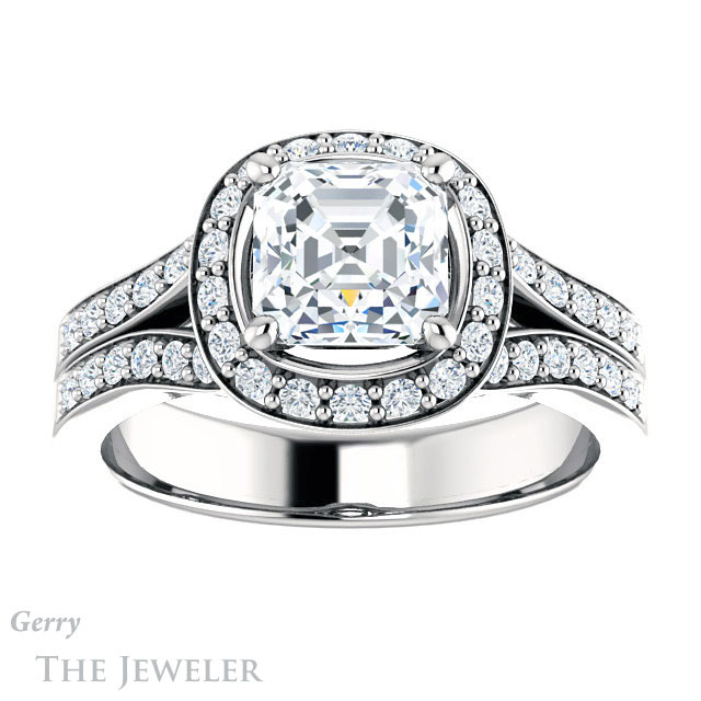 Asscher Cut Forever One Engagement Ring Setting #GTJ1001-asscher-fo-w