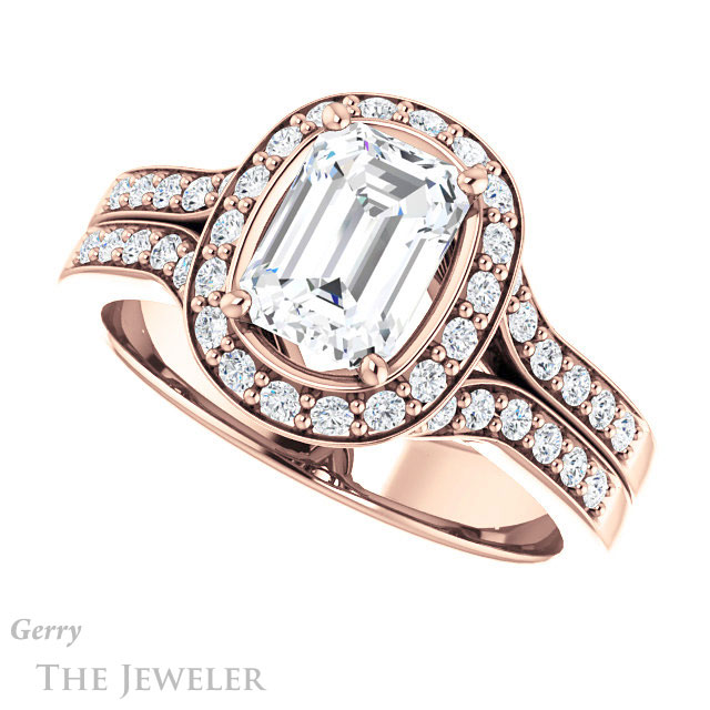 Emerald Cut Forever One Moissanite Engagement Ring #GTJ1001-emerald-fb-r