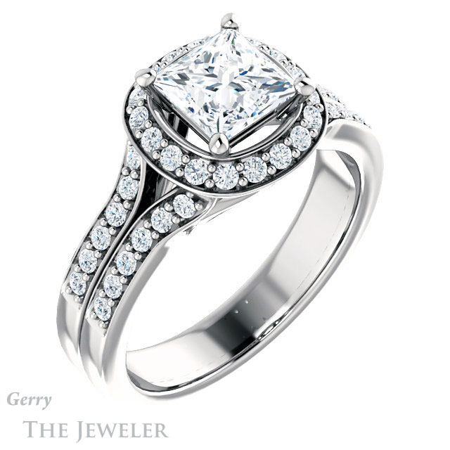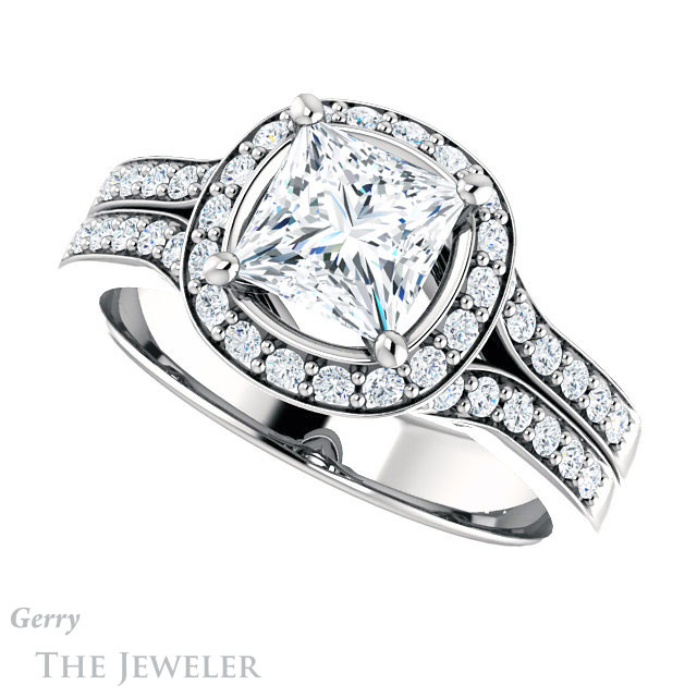 Princess Cut Forever One Moissanite Engagement Ring #GTJ1001-square-fo-w