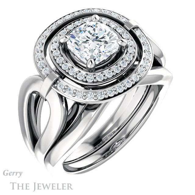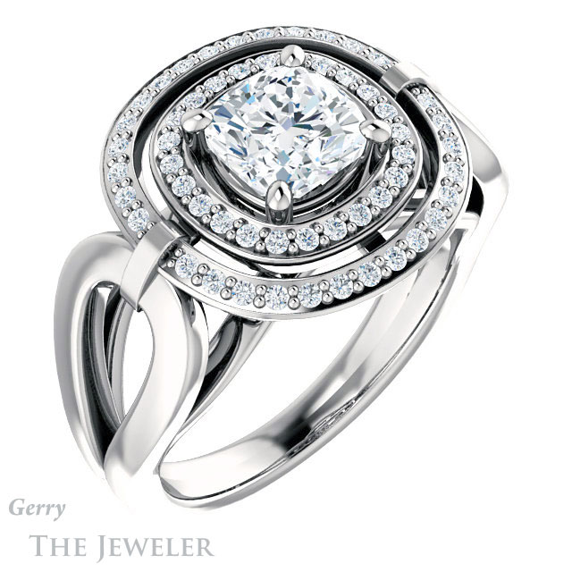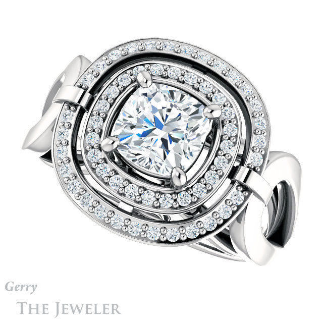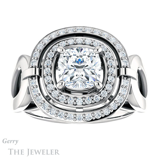 Cushion Cut Forever One Moissanite Engagement Ring #GTJ1002-cushion-fo-w