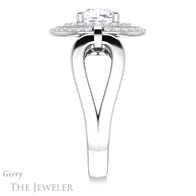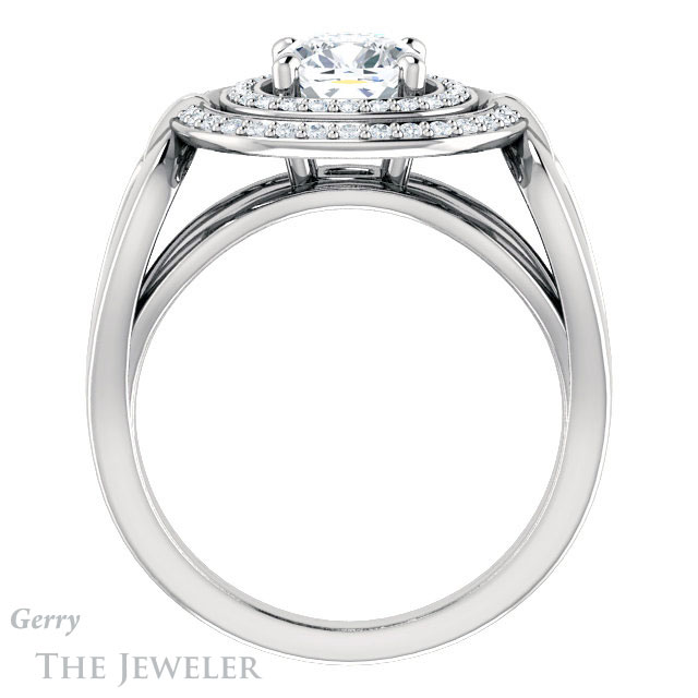 - This design can be set with your choice of certified lab grown diamond or moissanite center gem.Â