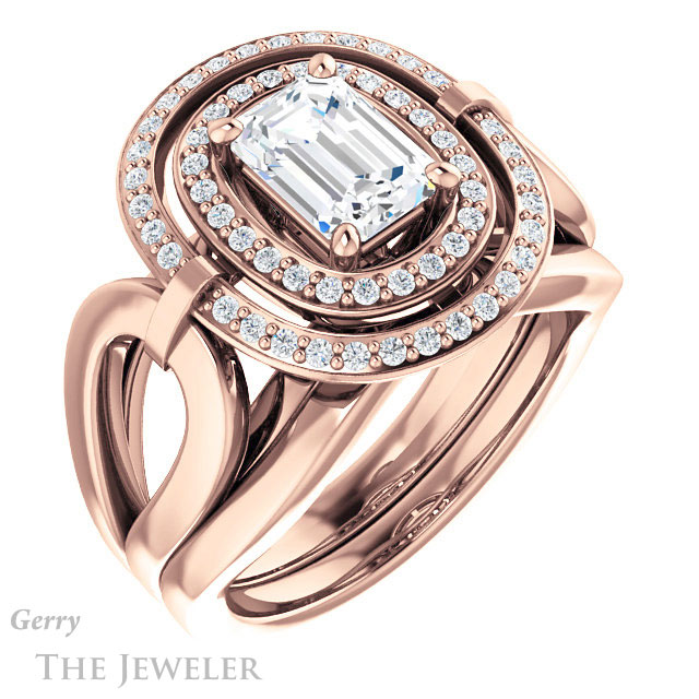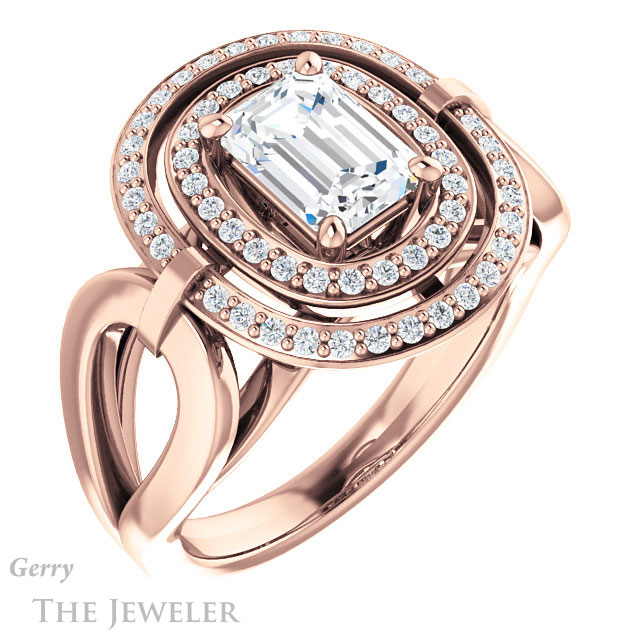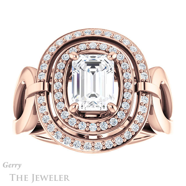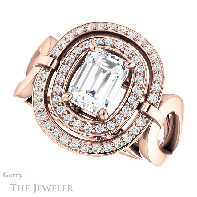 Emerald Cut Forever One Moissanite Engagement Ring #GTJ1002-emerald-fb-r