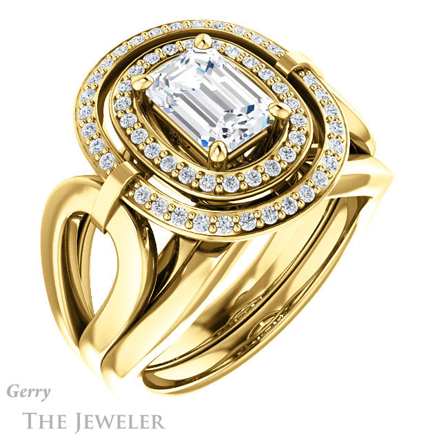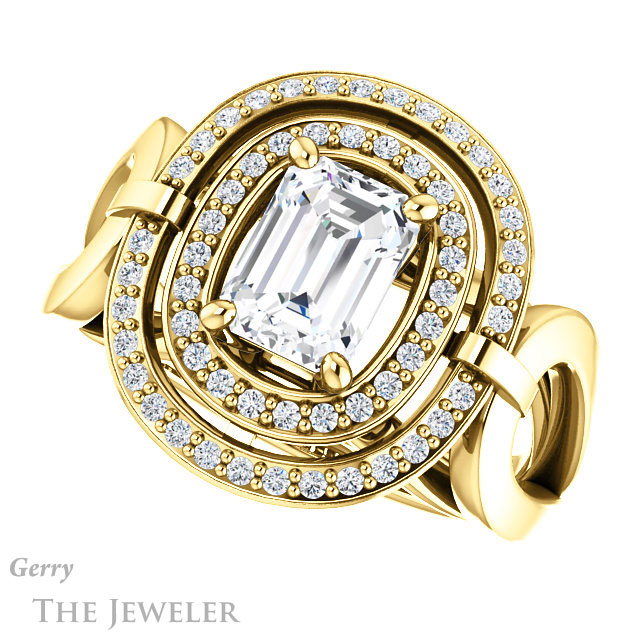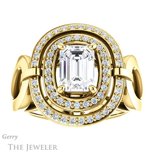 Emerald Cut Forever One Moissanite Engagement Ring #GTJ1002-emerald-fb-y