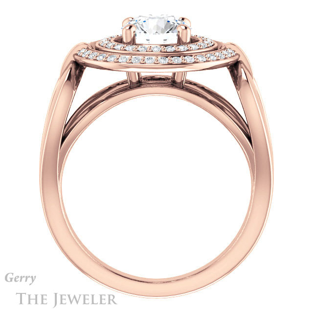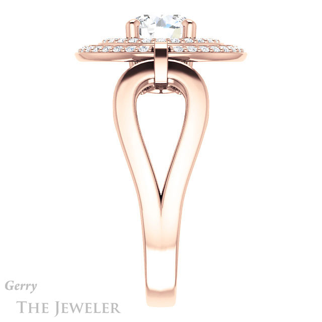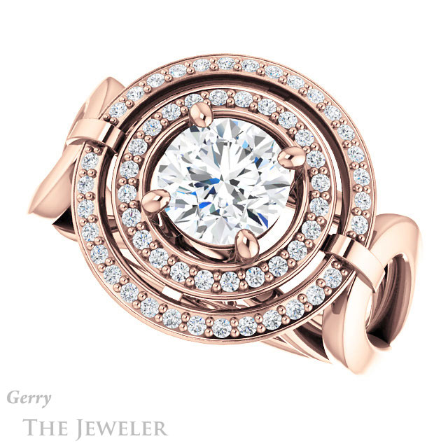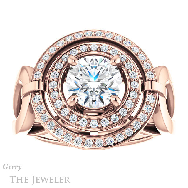 - This design can be set with your choice of certified lab grown diamond or moissanite center gem.Â