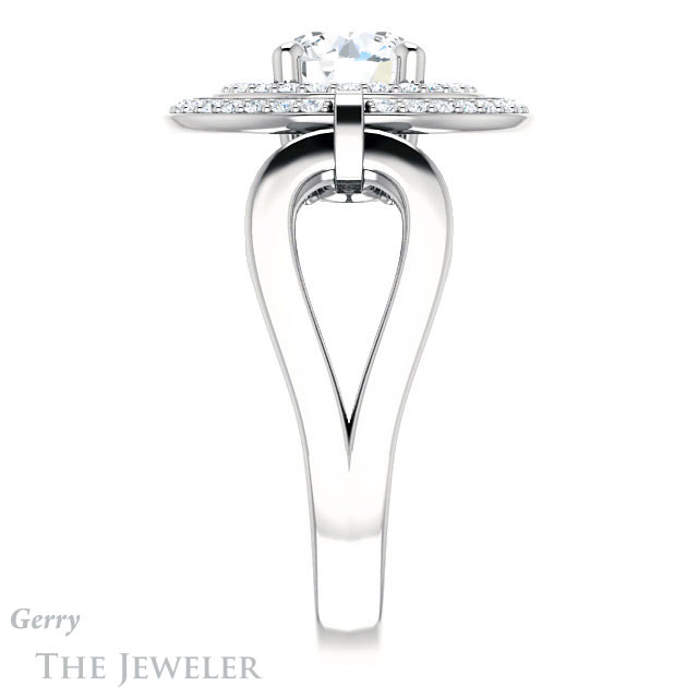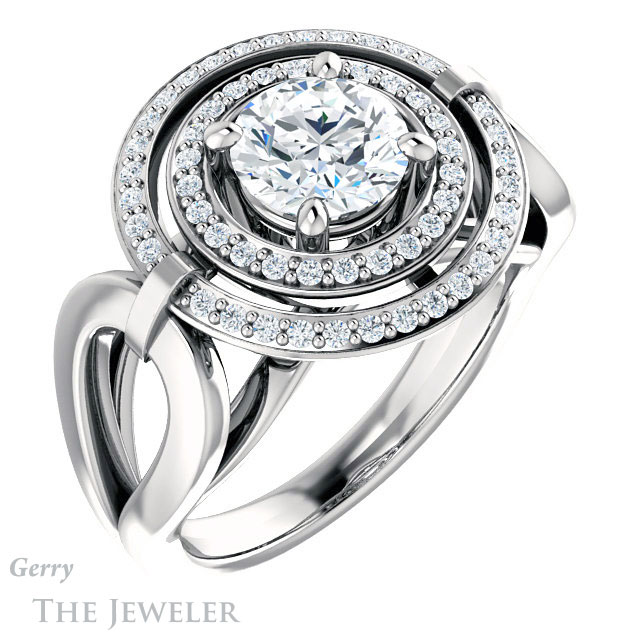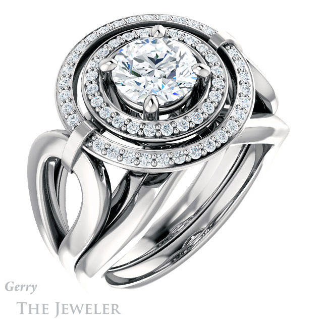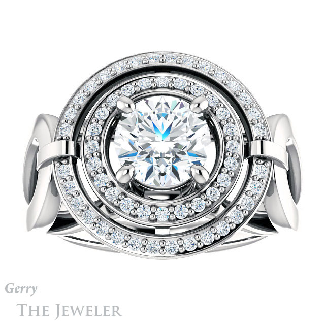 - This design can be set with your choice of certified lab grown diamond or moissanite center gem.Â