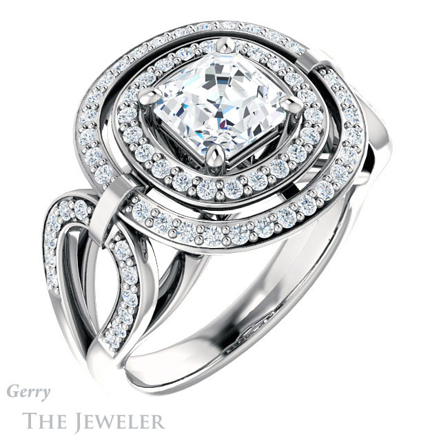 Asscher Cut Forever One Engagement Ring Setting #GTJ1003-asscher-fo-w