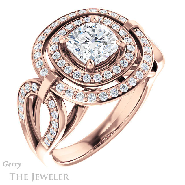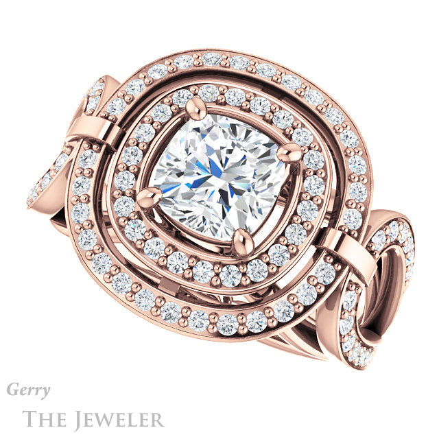 Cushion Cut Forever One Moissanite Engagement Ring #GTJ1003-cushion-fo-r