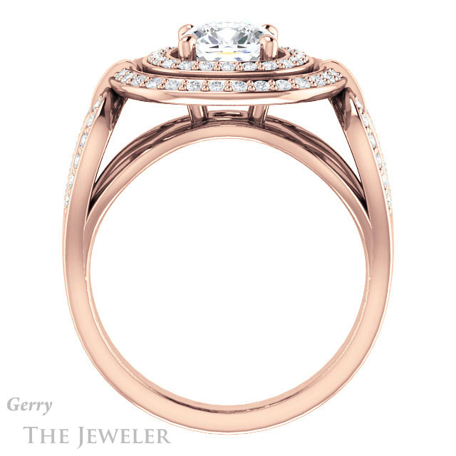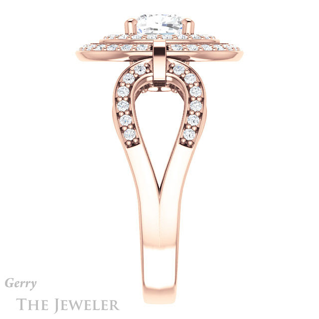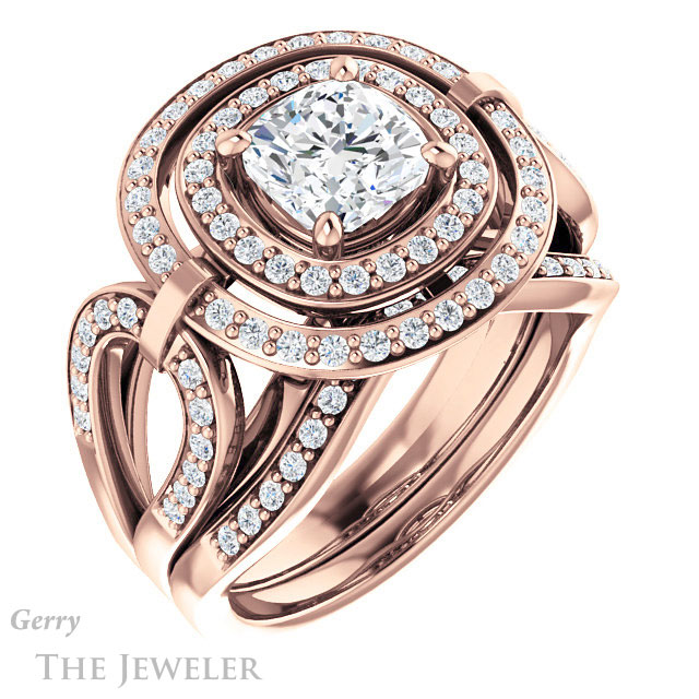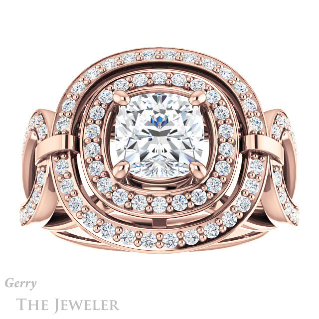 - This design can be set with your choice of certified lab grown diamond or moissanite center gem.Â