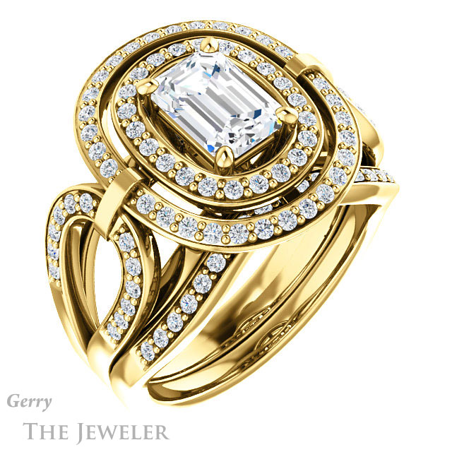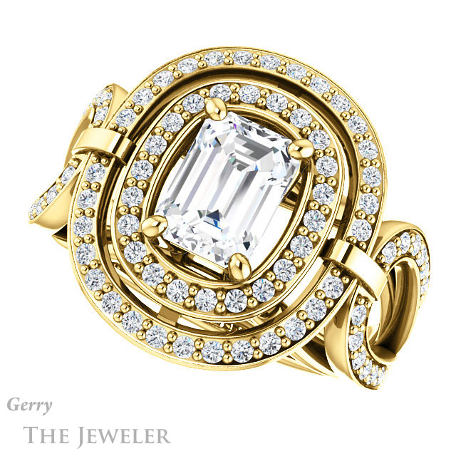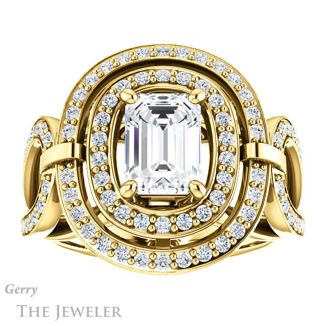 Emerald Cut Forever One Moissanite Engagement Ring #GTJ1003-emerald-fb-y