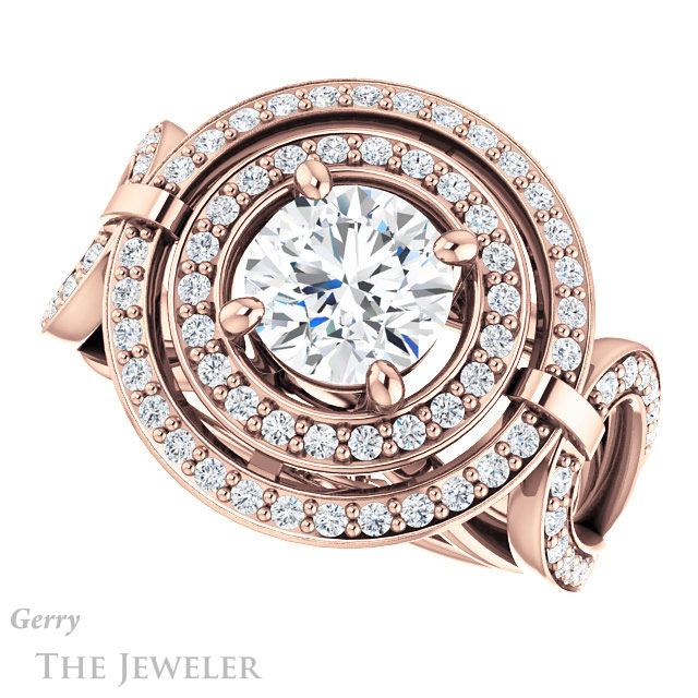 - This design can be set with your choice of certified lab grown diamond or moissanite center gem.Â