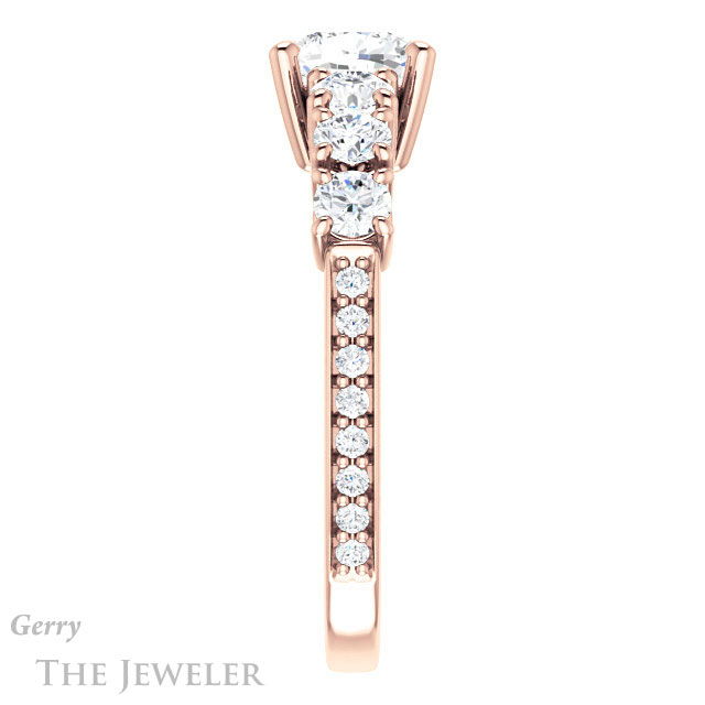 - This design can be set with your choice of certified lab grown diamond or moissanite center gem.Â