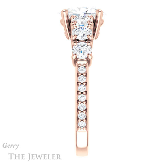 - This design can be set with your choice of certified lab grown diamond or moissanite center gem.Â