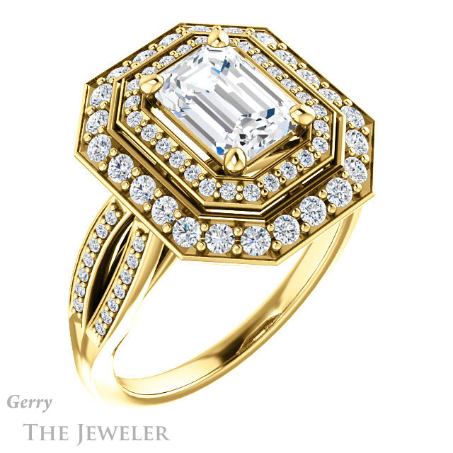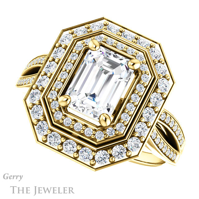 Emerald Cut Forever One Moissanite Engagement Ring #GTJ1010-emerald-fb-y