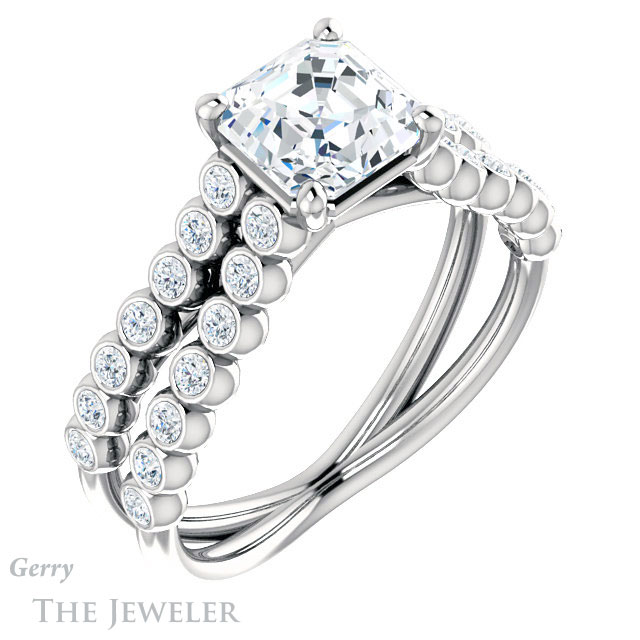 Asscher Cut Forever One Engagement Ring Setting #GTJ1012-asscher-fo-w