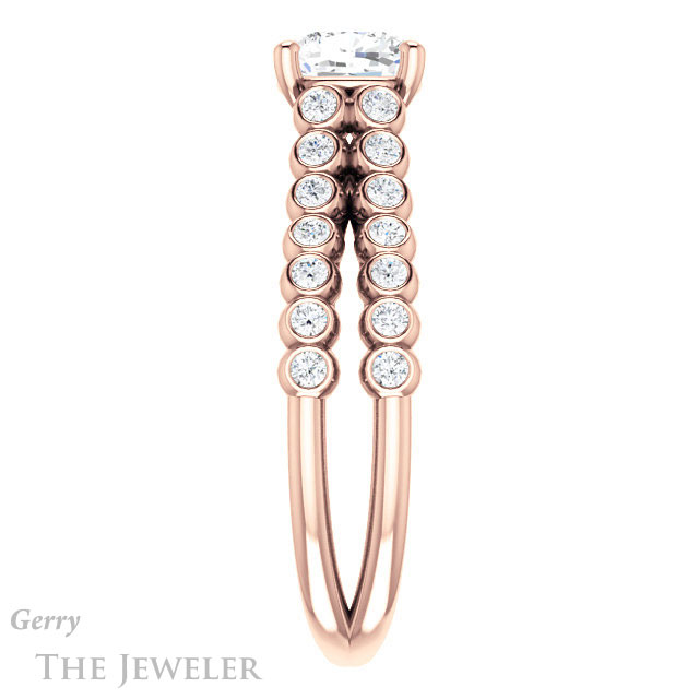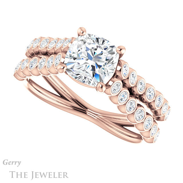 - This design can be set with your choice of certified lab grown diamond or moissanite center gem.Â