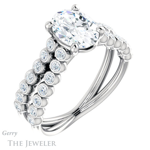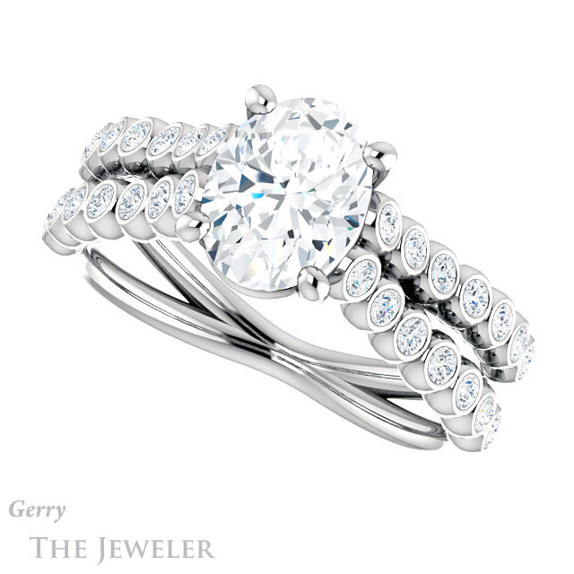 Oval Shaped Forever One Moissanite Engagement Ring #GTJ1012-oval-fo-w