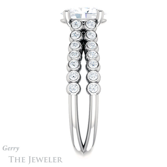 - This design can be set with your choice of certified lab grown diamond or moissanite center gem.Â