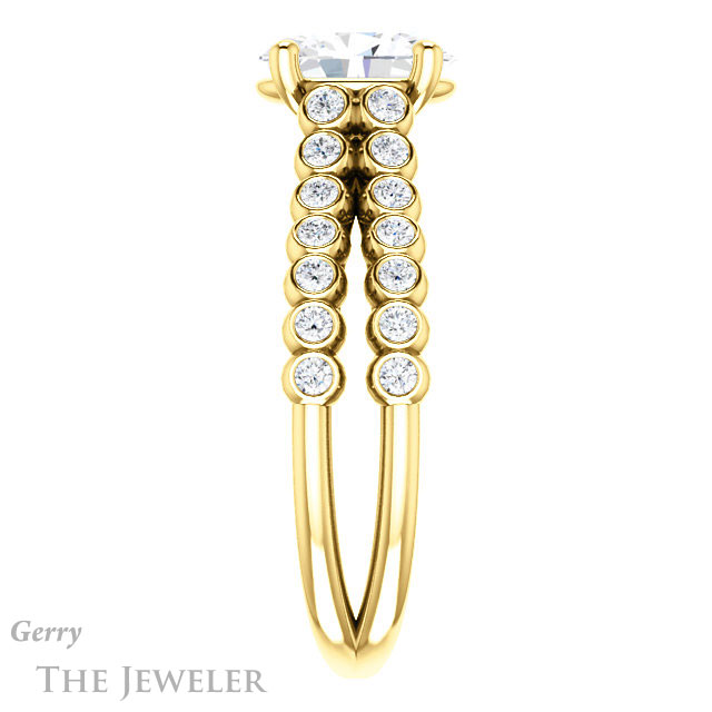 - This design can be set with your choice of certified lab grown diamond or moissanite center gem.Â