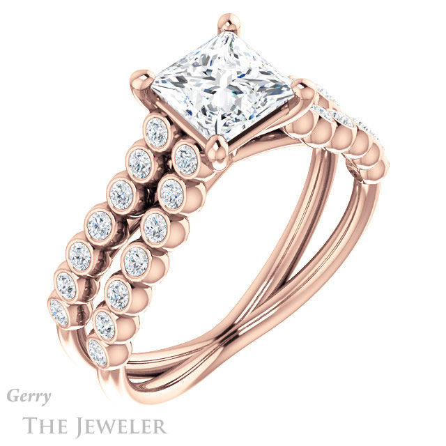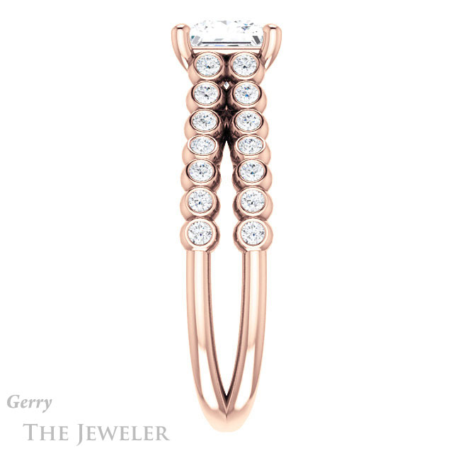 - This design can be set with your choice of certified lab grown diamond or moissanite center gem.Â
