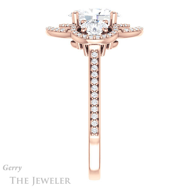 - This design can be set with your choice of certified lab grown diamond or moissanite center gem.Â