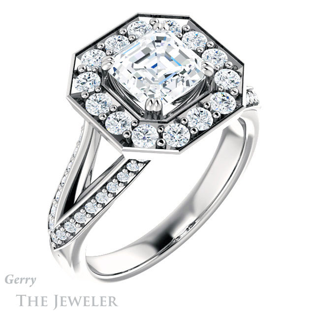 Asscher Cut Forever One Engagement Ring Setting #GTJ1028-asscher-fo-w