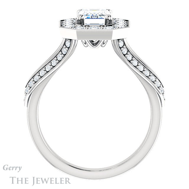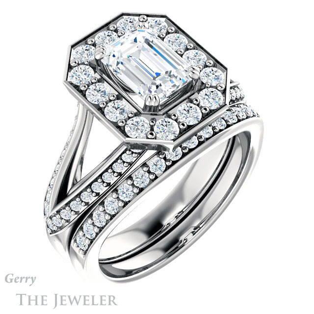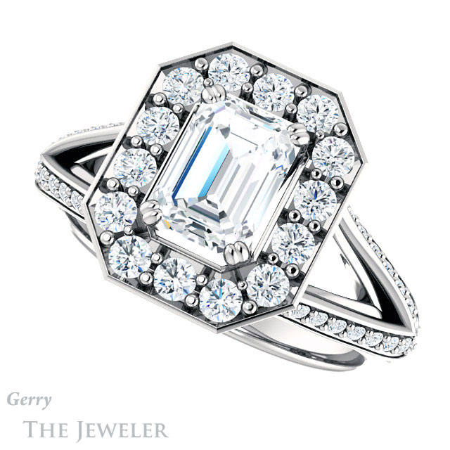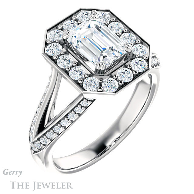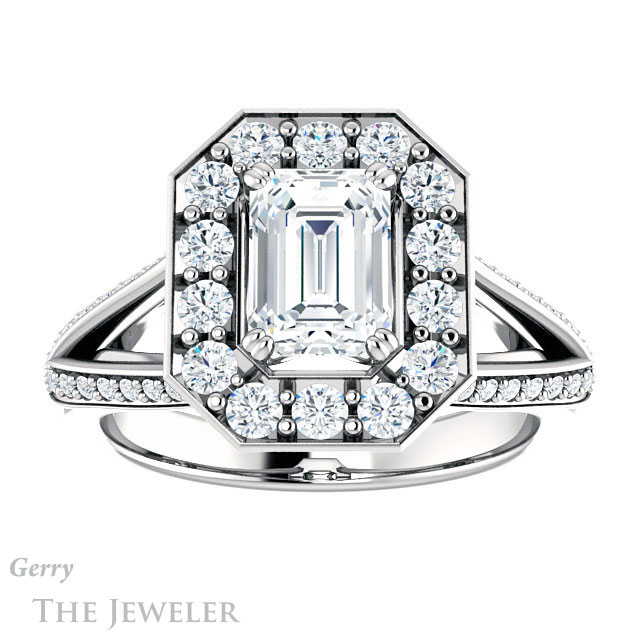 Emerald Cut Forever One Moissanite Engagement Ring #GTJ1028-emerald-fb-w