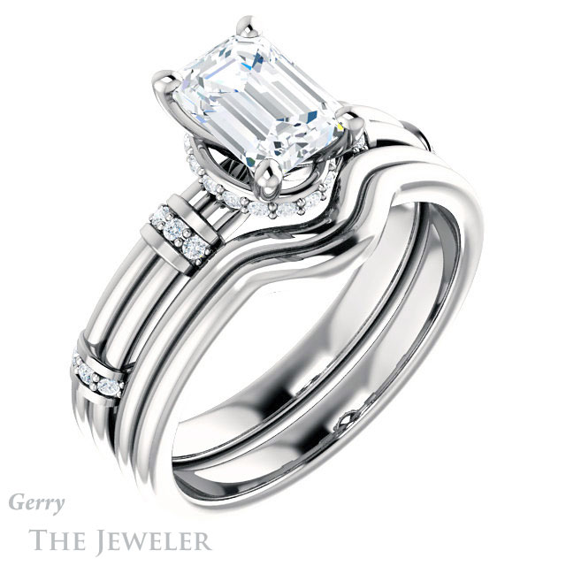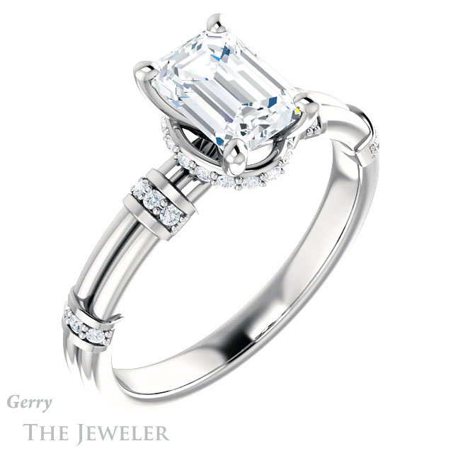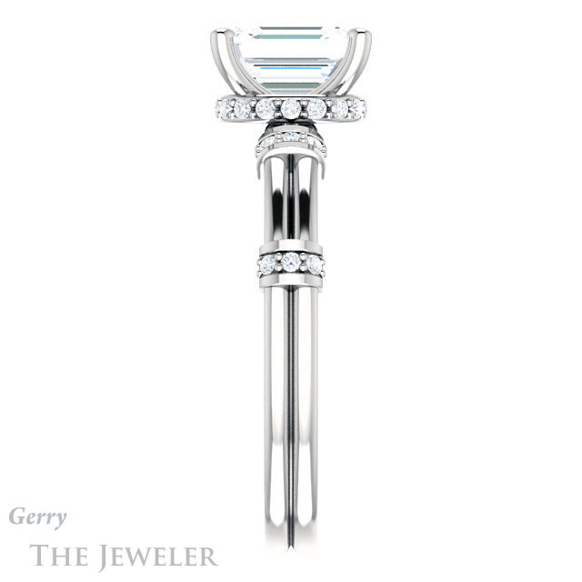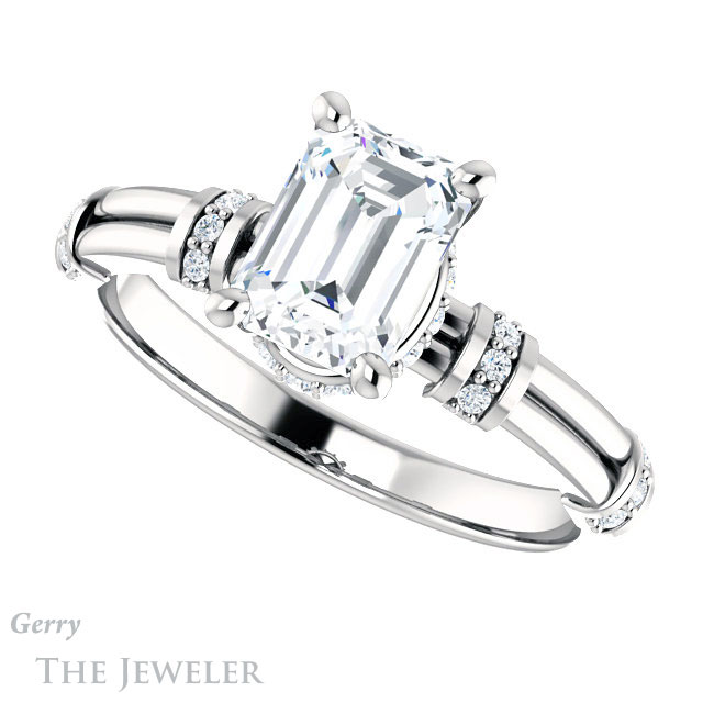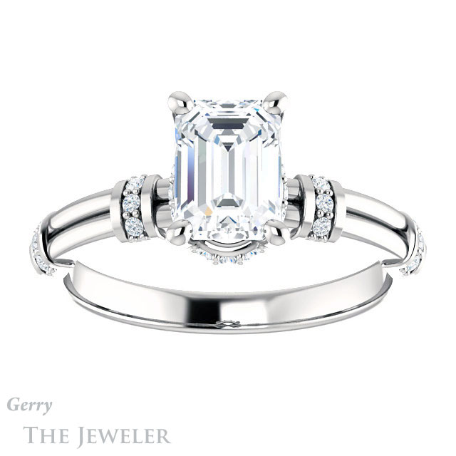 Emerald Cut Forever One Moissanite Engagement Ring #GTJ1036-emerald-fb-w