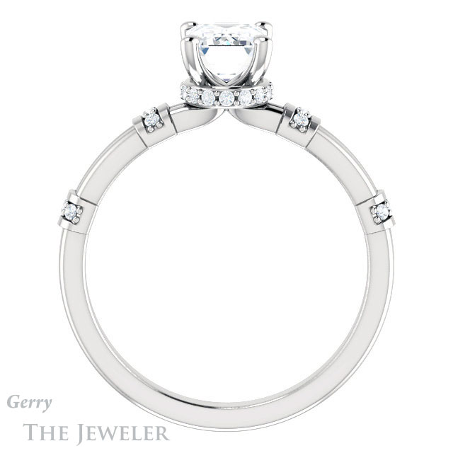 - This design can be set with your choice of certified lab grown diamond or moissanite center gem.Â