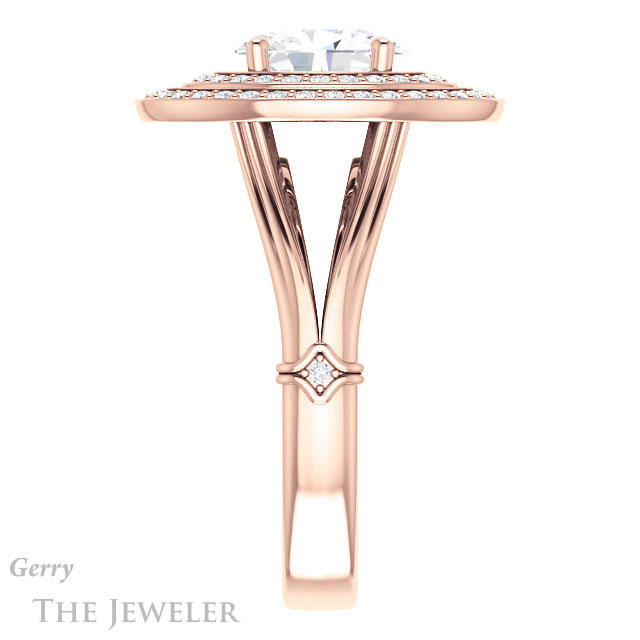 - This design can be set with your choice of certified lab grown diamond or moissanite center gem.Â