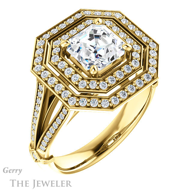 Asscher Cut Forever One Engagement Ring Setting #GTJ1047-asscher-fo-y