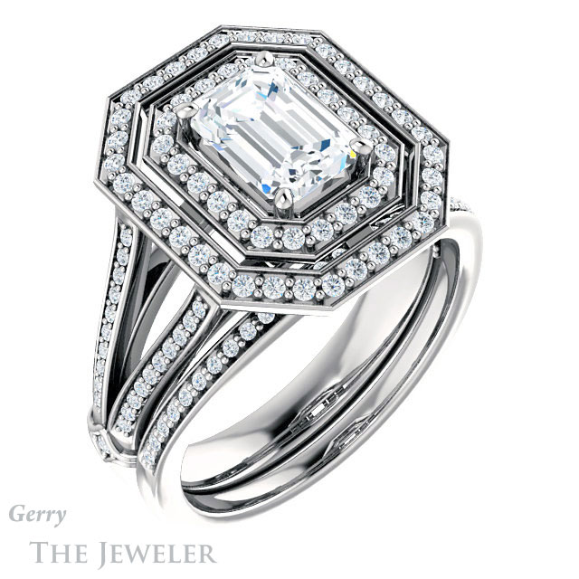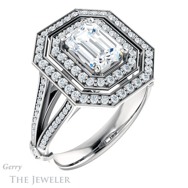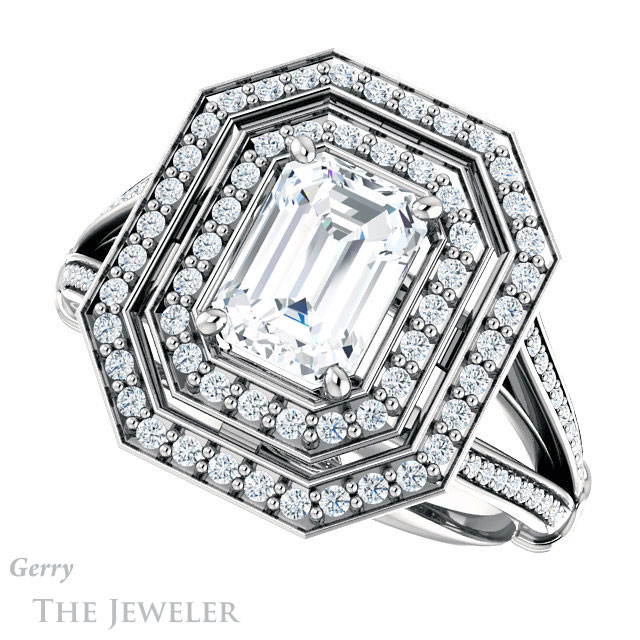 Emerald Cut Forever One Moissanite Engagement Ring #GTJ1047-emerald-fb-w