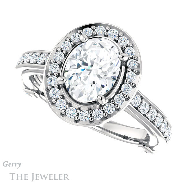 Oval Shaped Forever One Moissanite Engagement Ring #GTJ1055-oval-fo-w