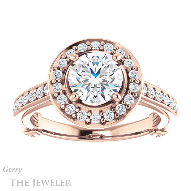 - This design can be set with your choice of certified lab grown diamond or moissanite center gem.Â