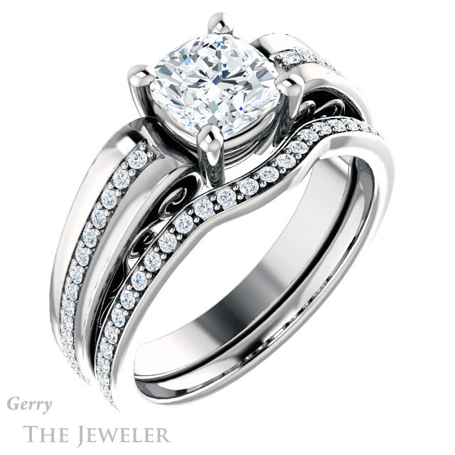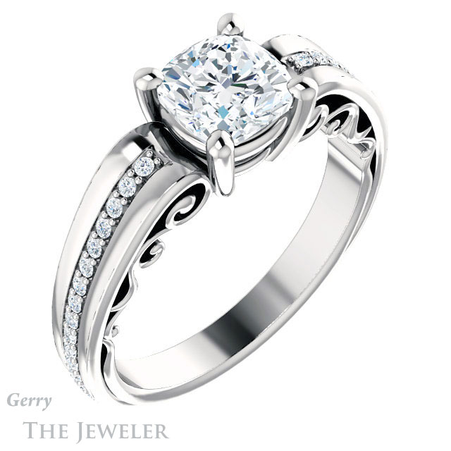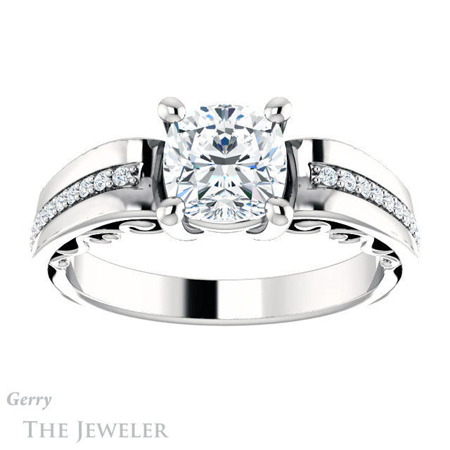 Cushion Cut Forever One Moissanite Engagement Ring #GTJ1058-cushion-fo-w