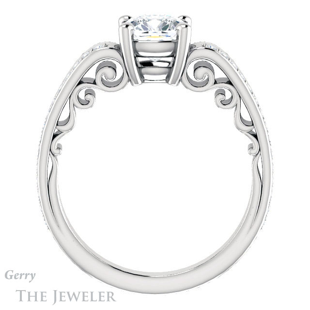 - This design can be set with your choice of certified lab grown diamond or moissanite center gem.Â