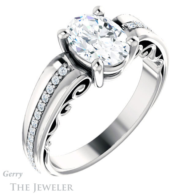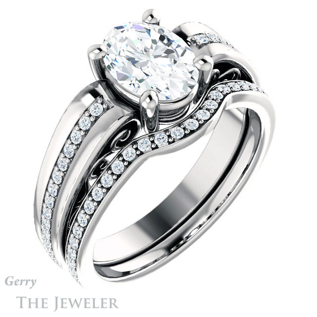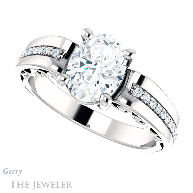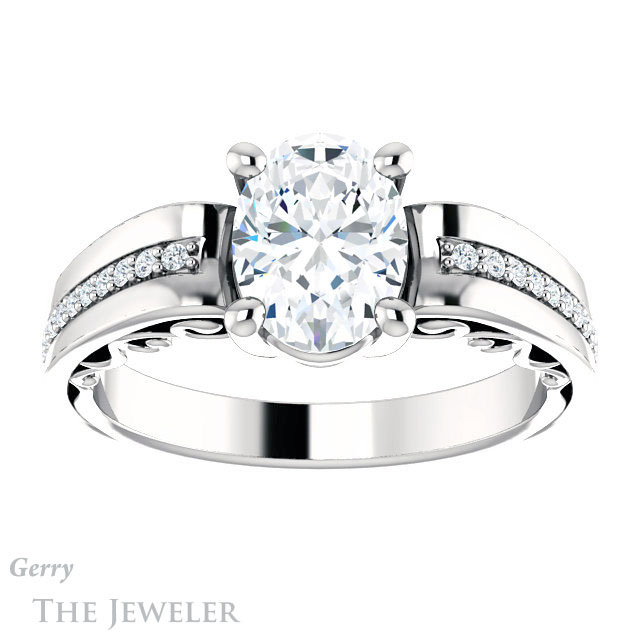 Oval Shaped Forever One Moissanite Engagement Ring #GTJ1058-oval-fo-w