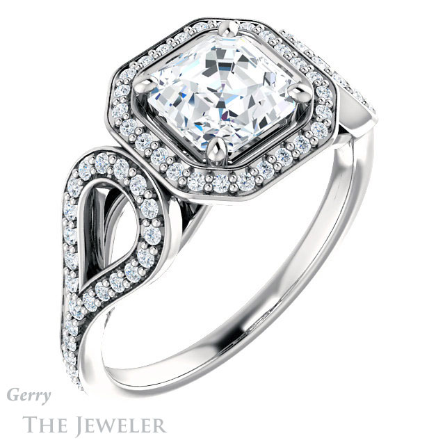 Asscher Cut Forever One Engagement Ring Setting #GTJ1068-asscher-fo-w