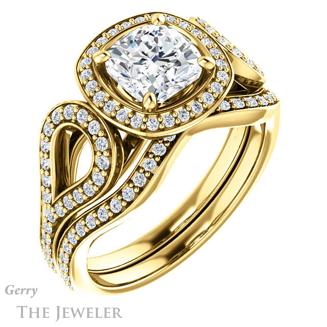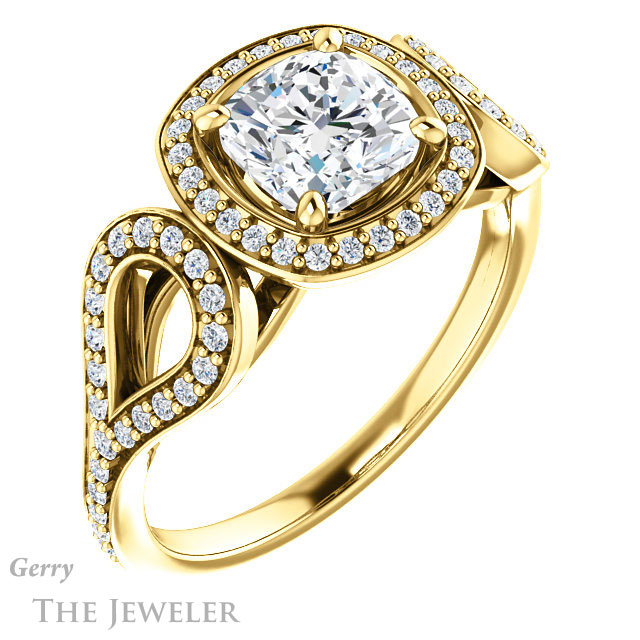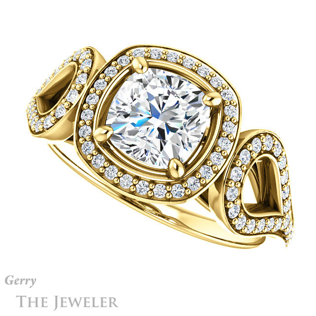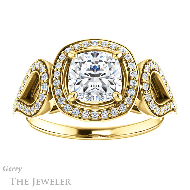 Cushion Cut Forever One Moissanite Engagement Ring #GTJ1068-cushion-fo-y