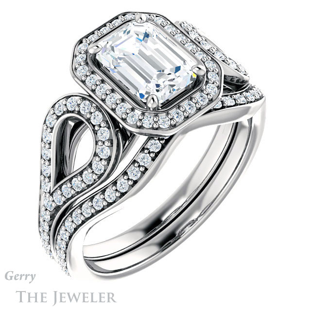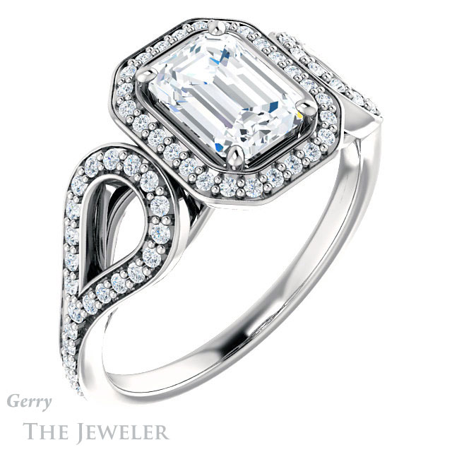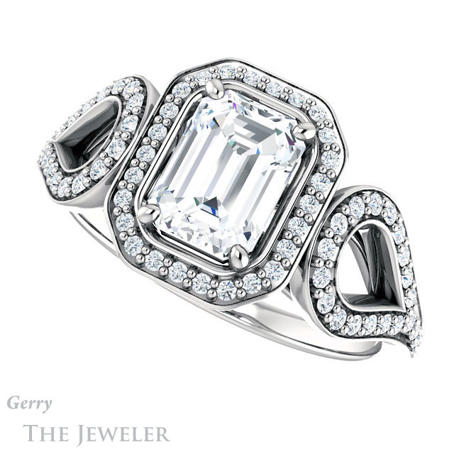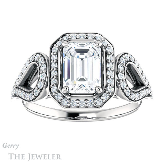 Emerald Cut Forever One Moissanite Engagement Ring #GTJ1068-emerald-fb-w