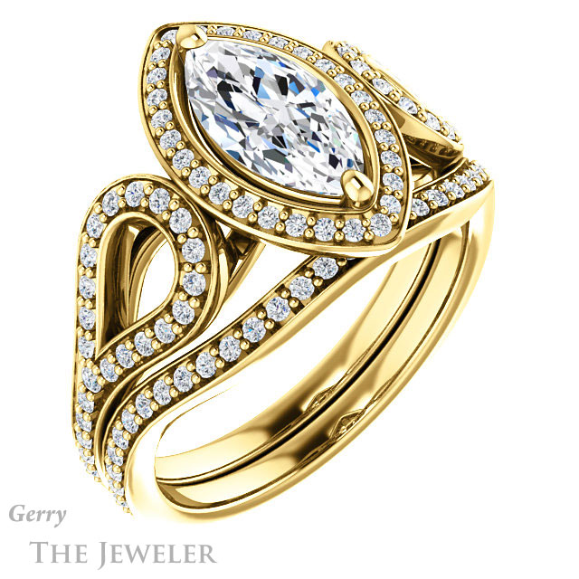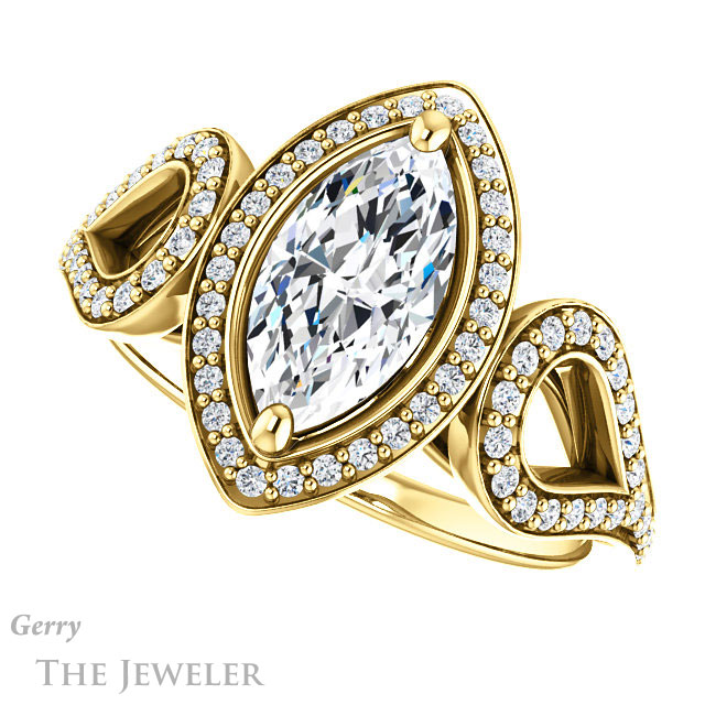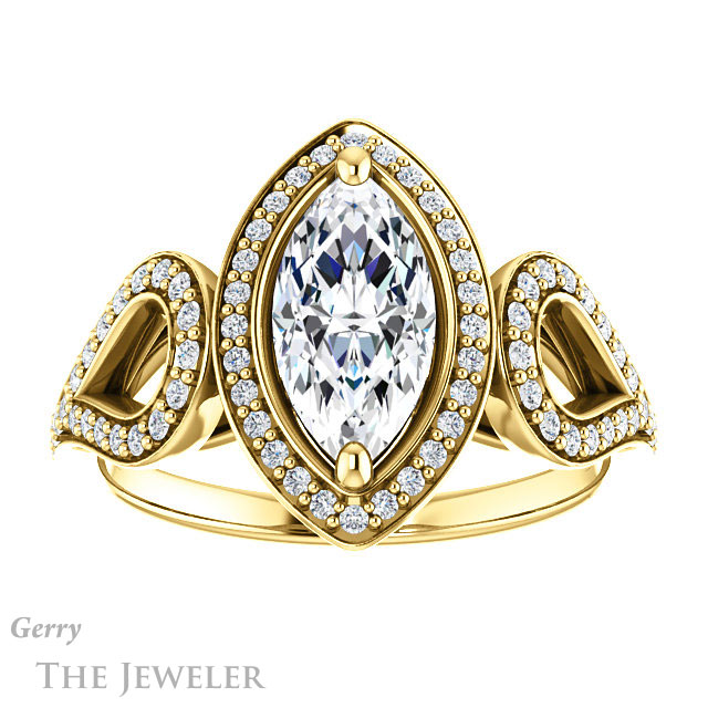 Marquise Cut Forever One Moissanite Engagement Ring #GTJ1068-marquise-fb-y