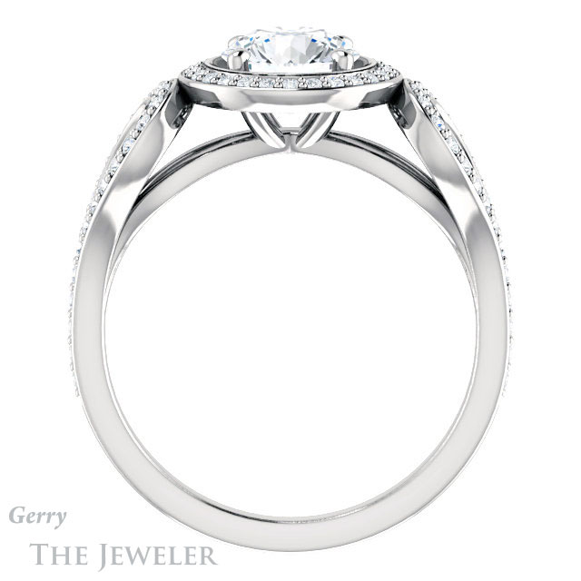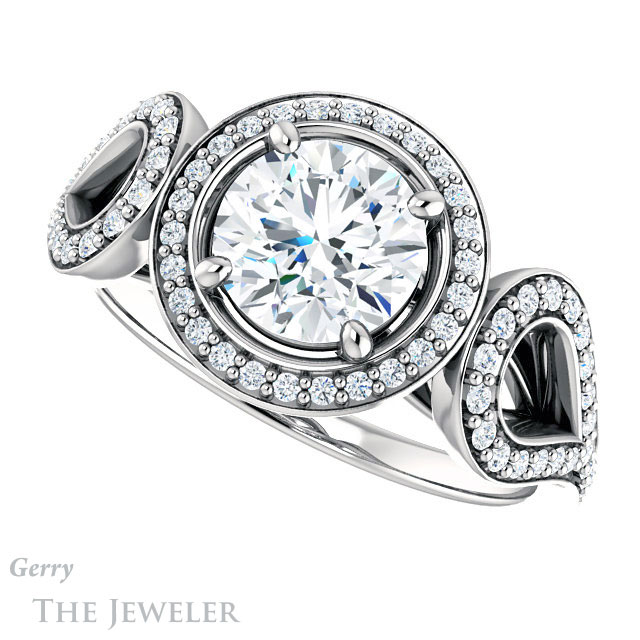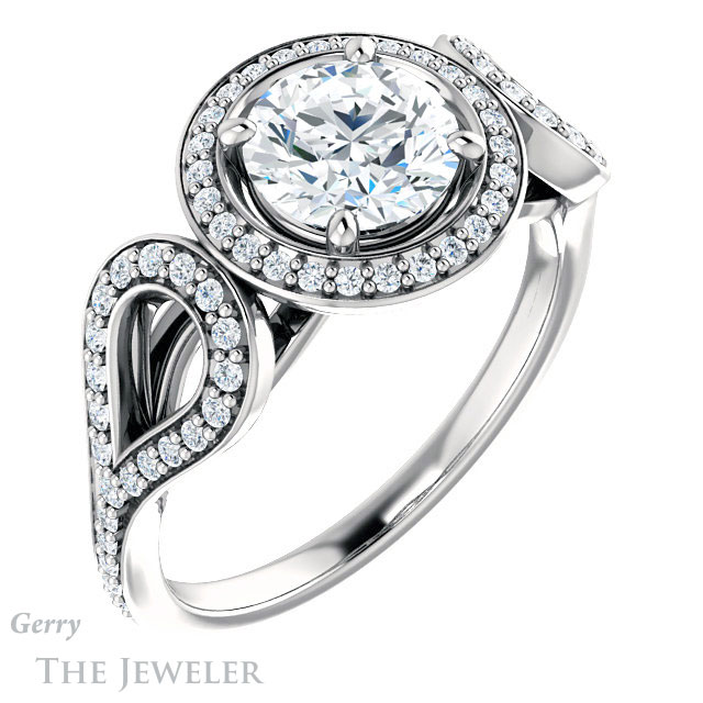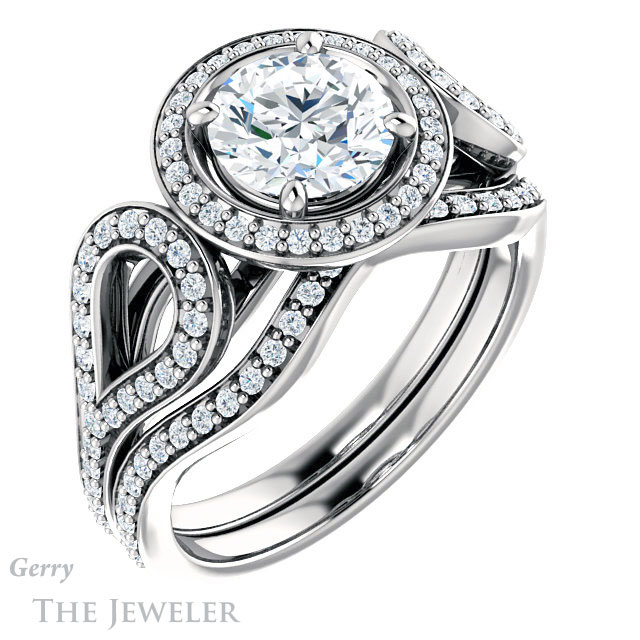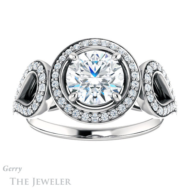 - This design can be set with your choice of certified lab grown diamond or moissanite center gem.Â