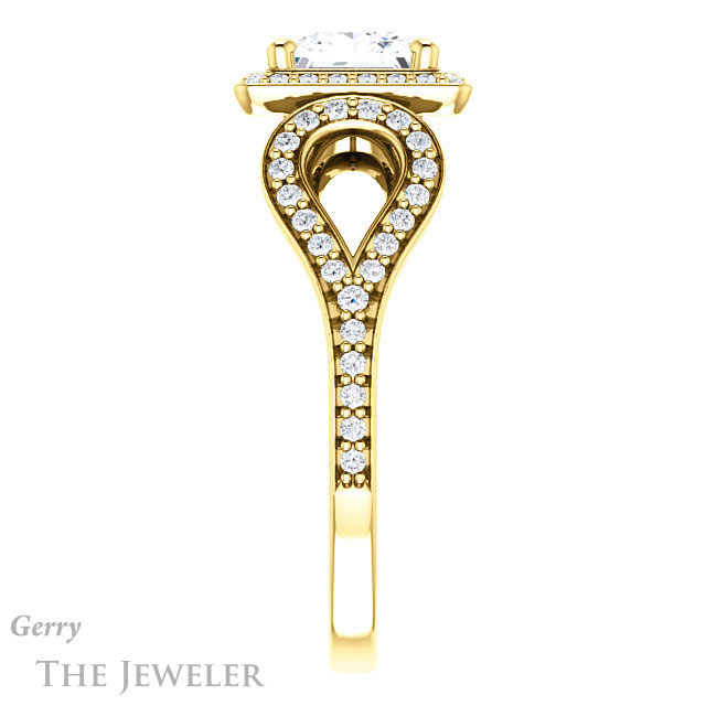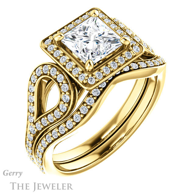 - This design can be set with your choice of certified lab grown diamond or moissanite center gem.Â