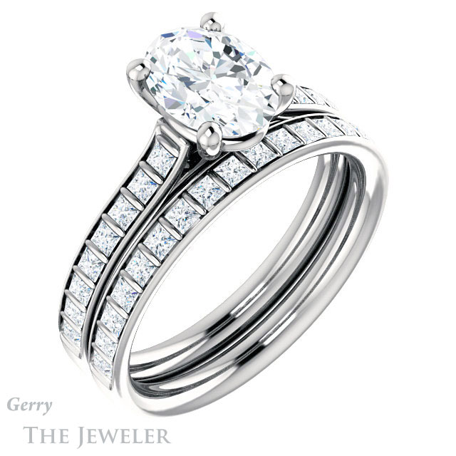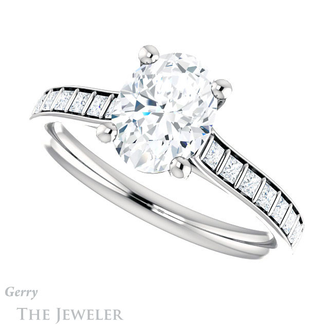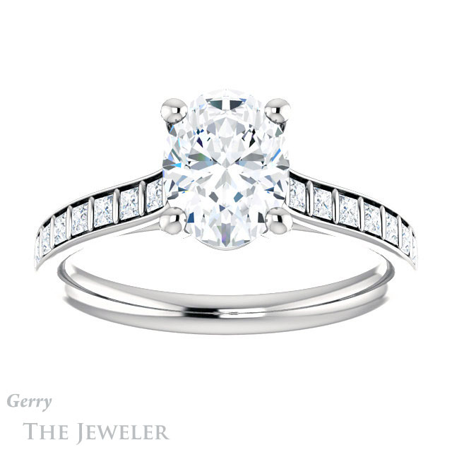 Oval Shaped Forever One Moissanite Engagement Ring #GTJ1074-oval-fo-w