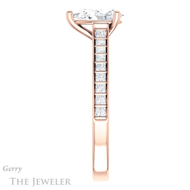 - This design can be set with your choice of certified lab grown diamond or moissanite center gem.Â