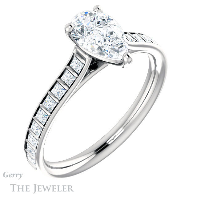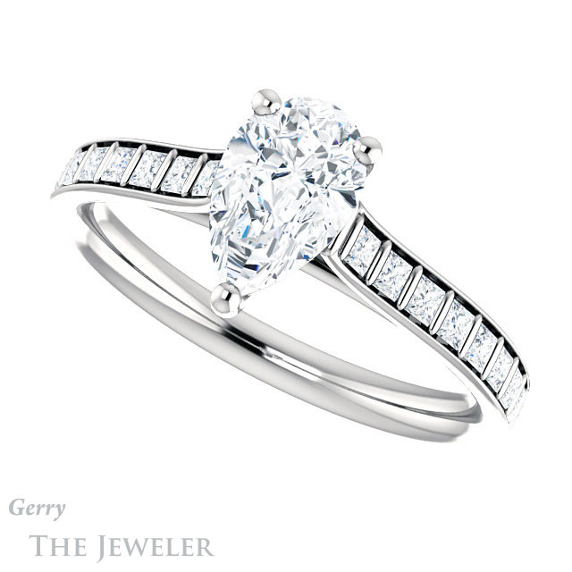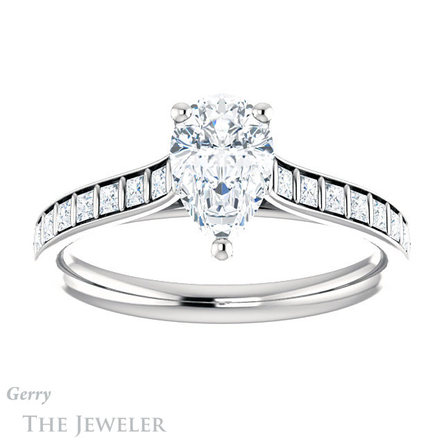 Pear Shaped Forever One Moissanite Engagement Ring #GTJ1074-pear-fb-w