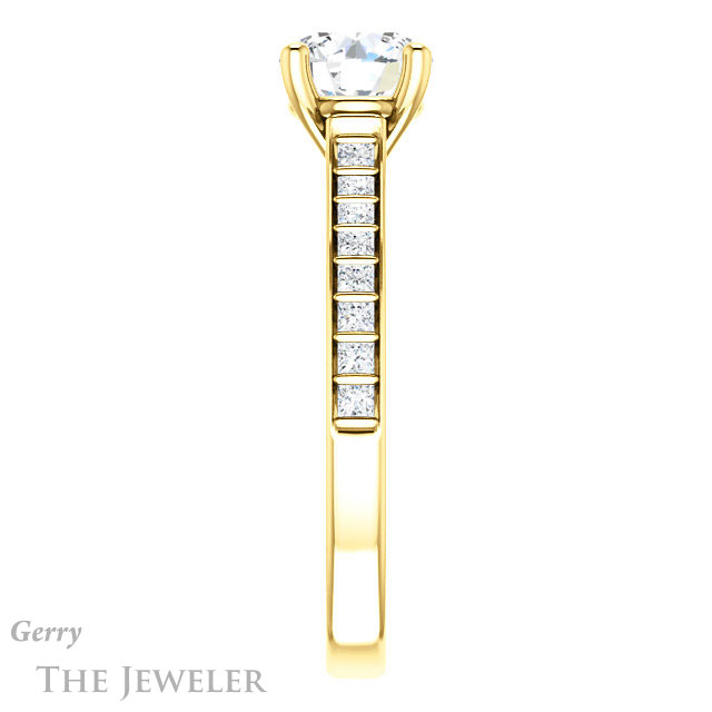 - This design can be set with your choice of certified lab grown diamond or moissanite center gem.Â