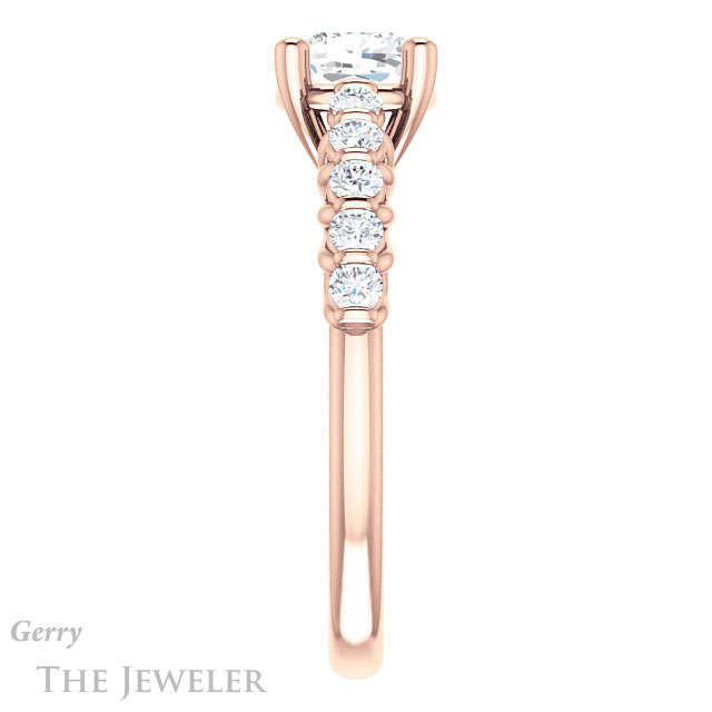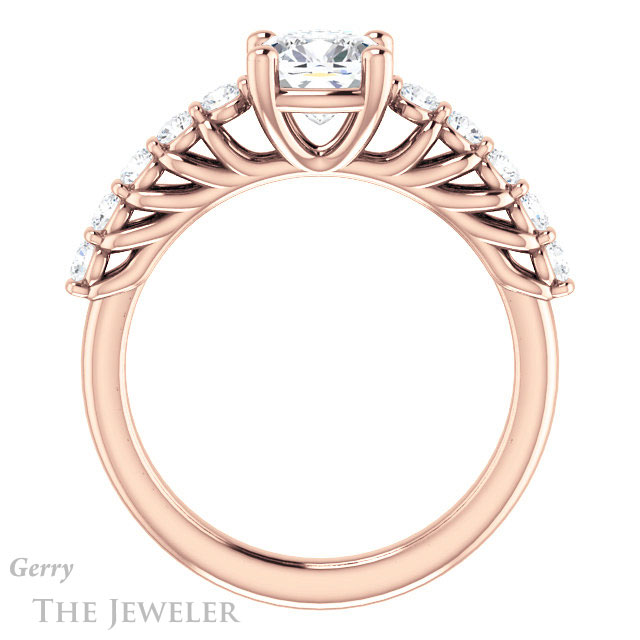 - This design can be set with your choice of certified lab grown diamond or moissanite center gem.Â