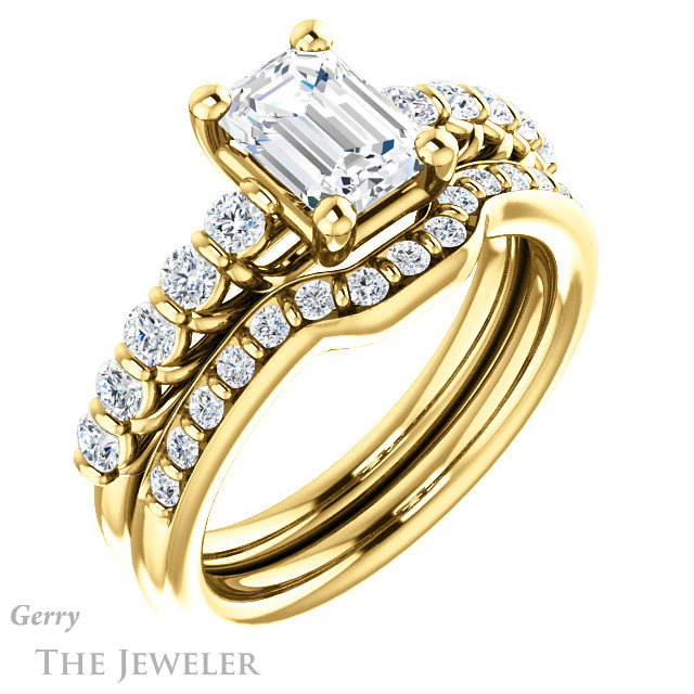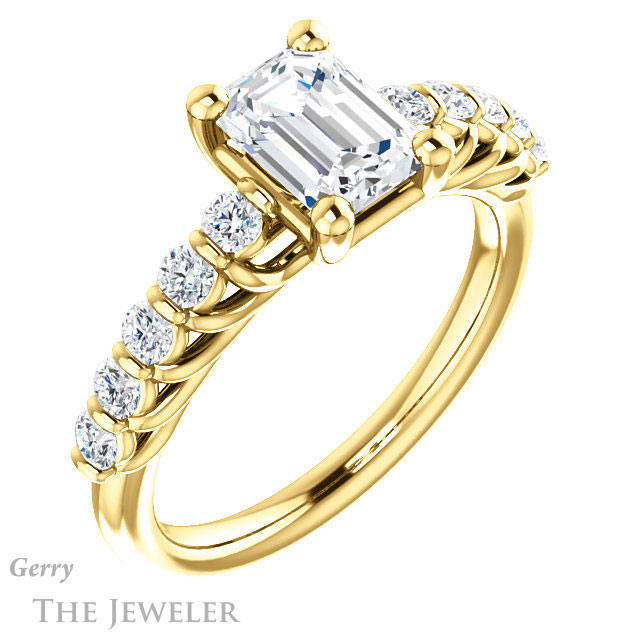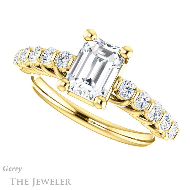 Emerald Cut Forever One Moissanite Engagement Ring #GTJ1077-emerald-fb-y