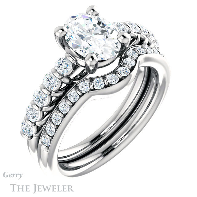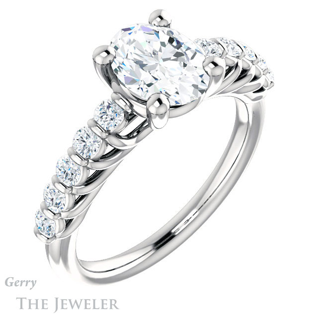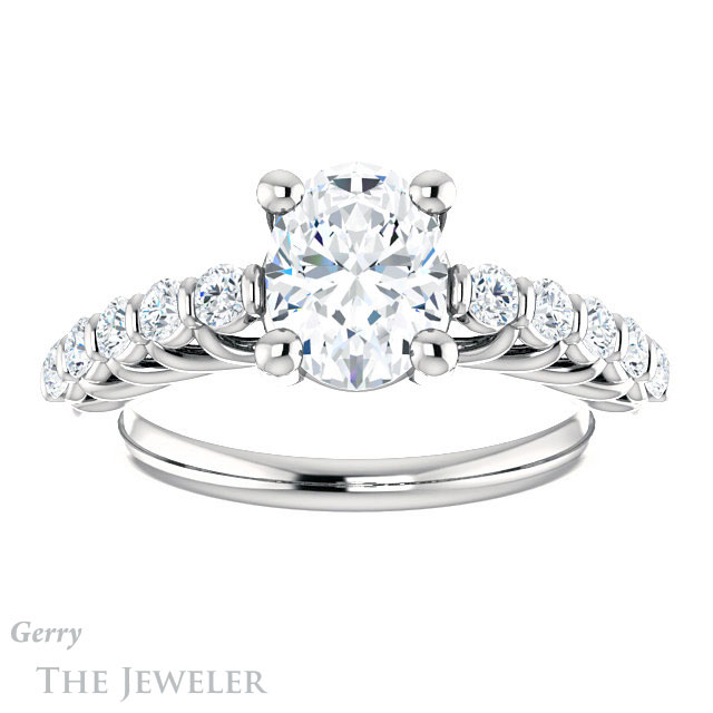 Oval Shaped Forever One Moissanite Engagement Ring #GTJ1077-oval-fo-w