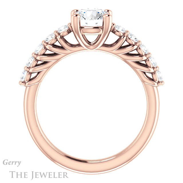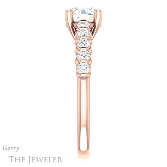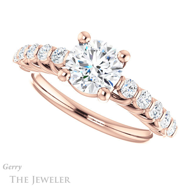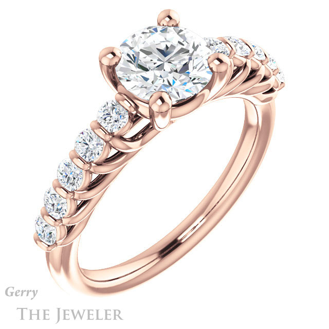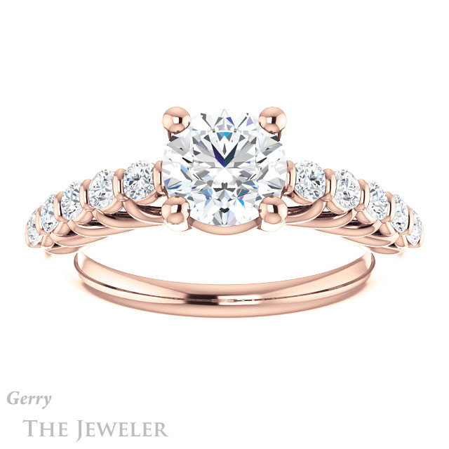 - This design can be set with your choice of certified lab grown diamond or moissanite center gem.Â